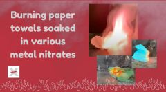 Burning paper towels soaked in various metal nitratesIgniting paper towels that have been soaked in concentrated potassium nitrate and allowed to dry yields a flame reminiscent of that produced by guncotton. Repeating this experiment with other metal nitrates produces flames with different colors, plus a few other chemical surprises! |