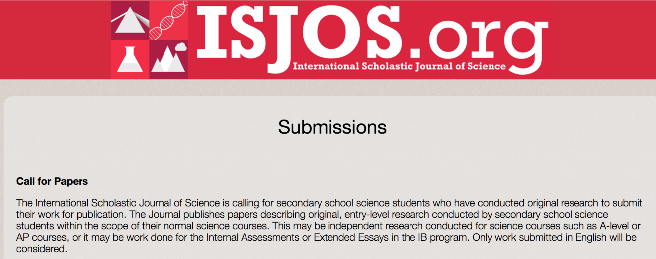 **Full disclosure: The International Scholastic Journal of Science is the brainchild of a colleague of mine at my current international school in Bangkok. I am now a volunteer on the Editorial Board and help with the chemistry-focused articles that are submitted to ISJOS. My role with ISJOS is currently quite minimal, with some paper reviewing for chemistry-related papers happening a few times per year.