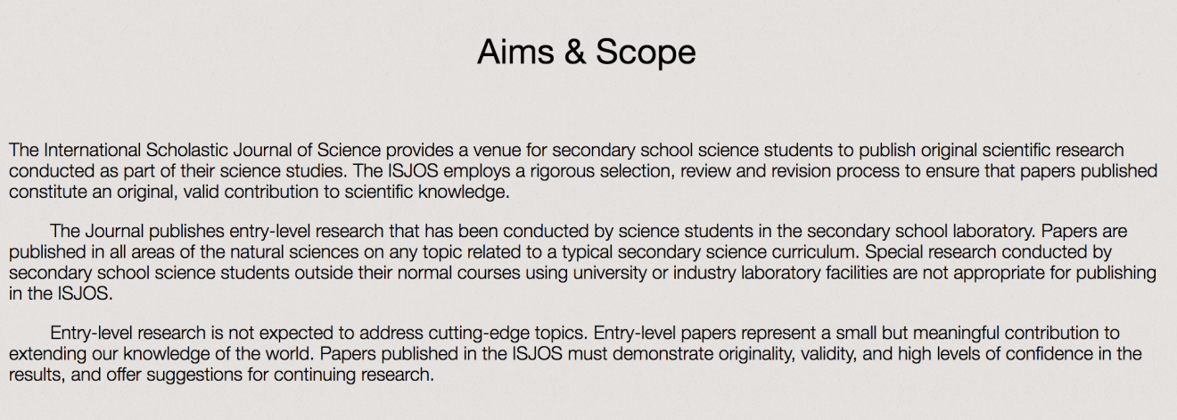 Figure 1 - Screen shot of "Aims and Scope" from ISJOS.org (accessed 4/27/18)